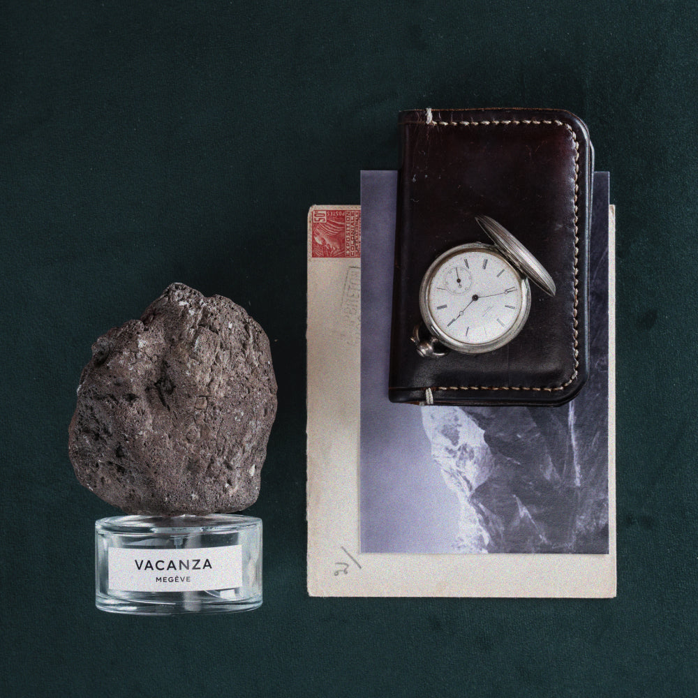 A chalet tucked into a slope, morning frost on old wood, hot tea infused with herbs, leather gloves resting near the fire.